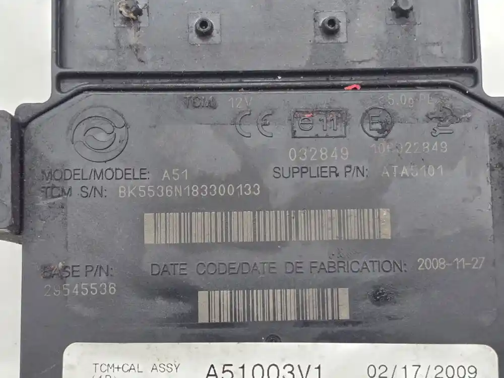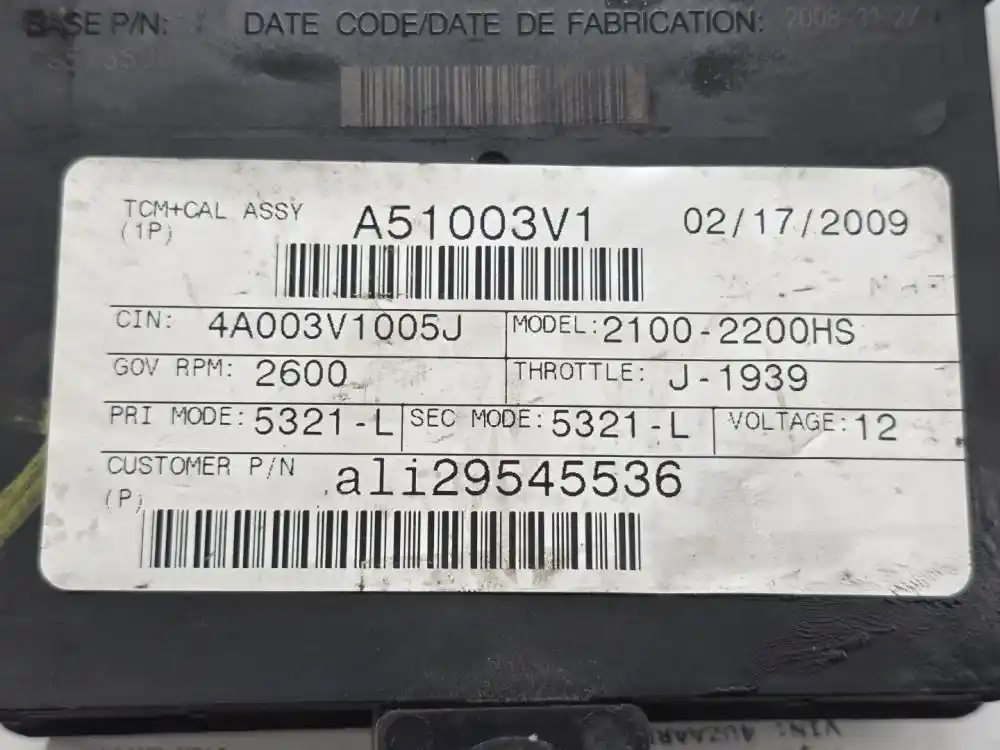 (Used) 2009 Allison (AT), TRANSMISSION ECM- ECM Model: A51, Part Number: 29545536, Serial Number: BK5536N183300133 , 12 Volts, A51003V1, CIN: 4A003V1005J, Transmission Model: 2200HS, Plug Pins: 80 Pins Plug Rectangular, Reference images for condition. ,