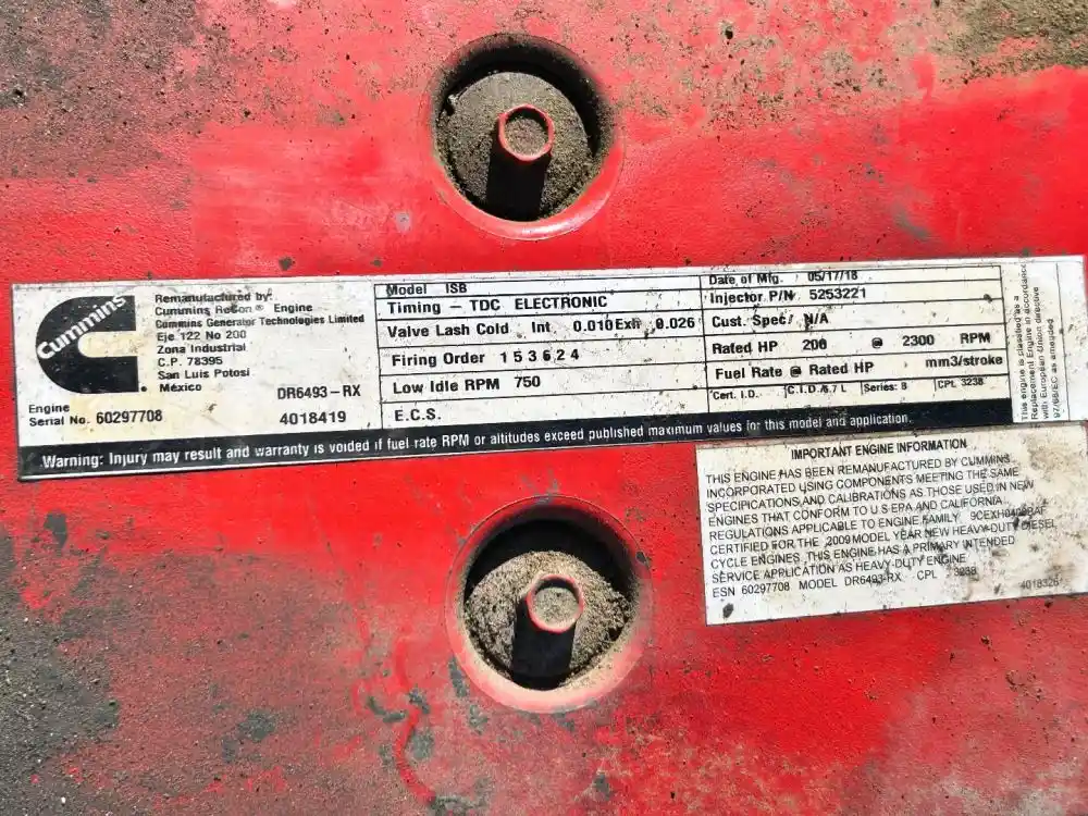 (Used) 2009 Cummins ISB 6.7, ENGINE ASSEMBLY- Family Number: 9CEXH0408BAF Displacement: 6.7L, Horsepower: 200, Ar.No./CPL: 3238, Serial Number: 60297708, Part Number: 4018326, E.C.S: PCM, EGR, PTOX, Reference images for condition