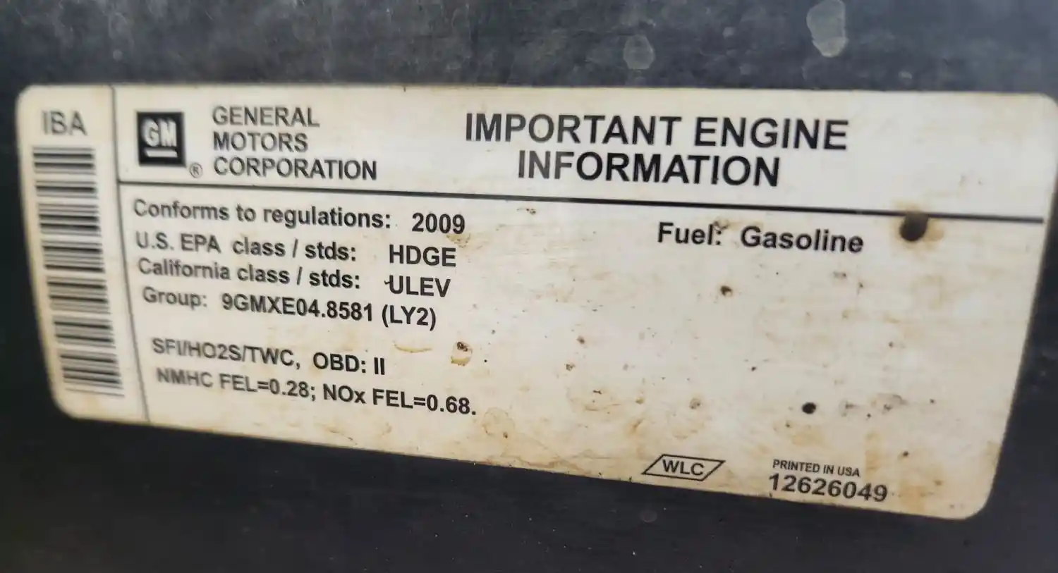 (Used) 2009 GM/Chev (HD) 4.8, ENGINE ASSEMBLY- Family Number: 9GMXE04.8581, Displacement: 4.8L, Horsepower: 295, Serial Number: TBD, E.C.S: SFI, HO2S, TWC, Fuel: Gasoline, Reference images for condition
