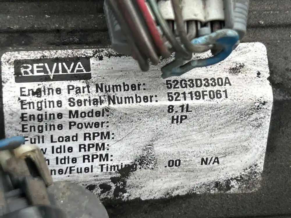 (Used) 2009 GM/Chev (HD) 8.1L, ENGINE ASSEMBLY- Remanufactured- 06/20/2019 Family Number: 9GMXH08.1503, Displacement: 8.1L, Horsepower: 330, Serial Number: 52119F061, Part Number: 52G3D330A, E.C.S: SFI, TWC, H02S, Fuel: Gasoline, Reference images for condition CRG HEAVY TRUCK PARTS)