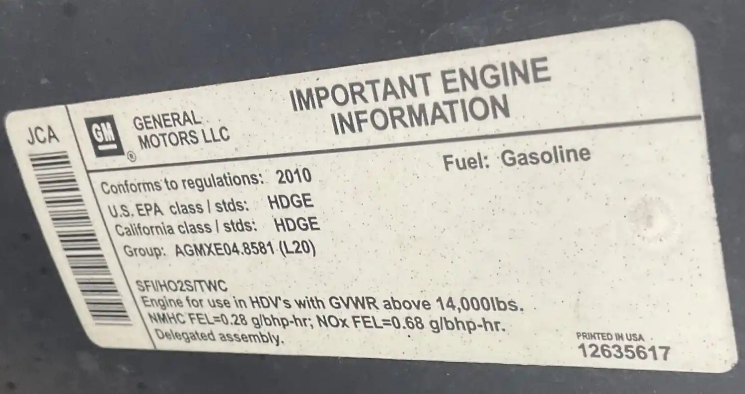 (Used) 2010 GM/Chev (HD) 4.8, ENGINE ASSEMBLY- Family Number: AGMXE04.8581, Displacement: 4.8L, Horsepower: 295, Serial Number: TBD, ECS: SFI, HO2S, TWC, Fuel: Gasoline, Is Broken Reference images for condition