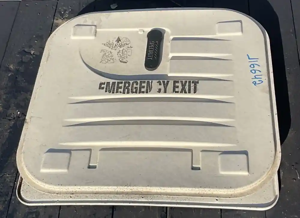 (Used) 2011 Freightliner B2, EMERGENCY EXIT ROOF HATCH- Material: Plastic and Steel, Color: White, Outside Dimensions: 27 3/4" x 27 3/4", Inside Dimensions: 27" x 27",