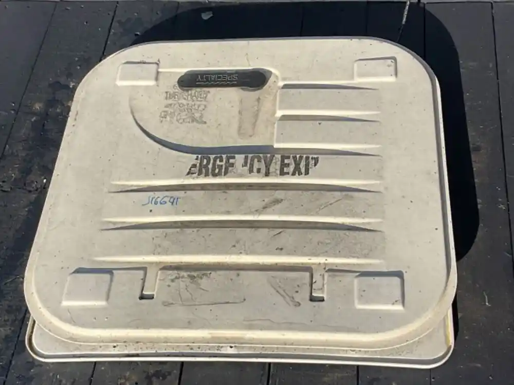 (Used) 2011 Freightliner B2, EMERGENCY EXIT ROOF HATCH- Material: Plastic and Steel, Color: White, Outside Dimensions: 27 3/4" x 27 3/4", Inside Dimensions: 27" x 27",
