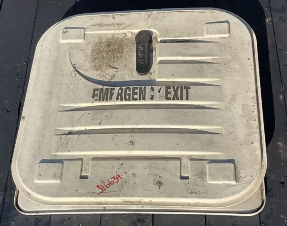 (Used) 2011 Freightliner B2, EMERGENCY EXIT ROOF HATCH- Material: Plastic and Steel, Color: White, Outside Dimensions: 27 3/4" x 27 3/4", Inside Dimensions: 27" x 27",