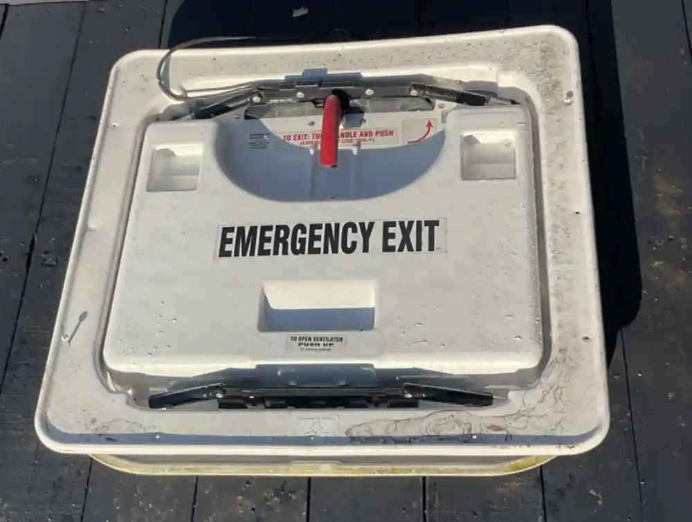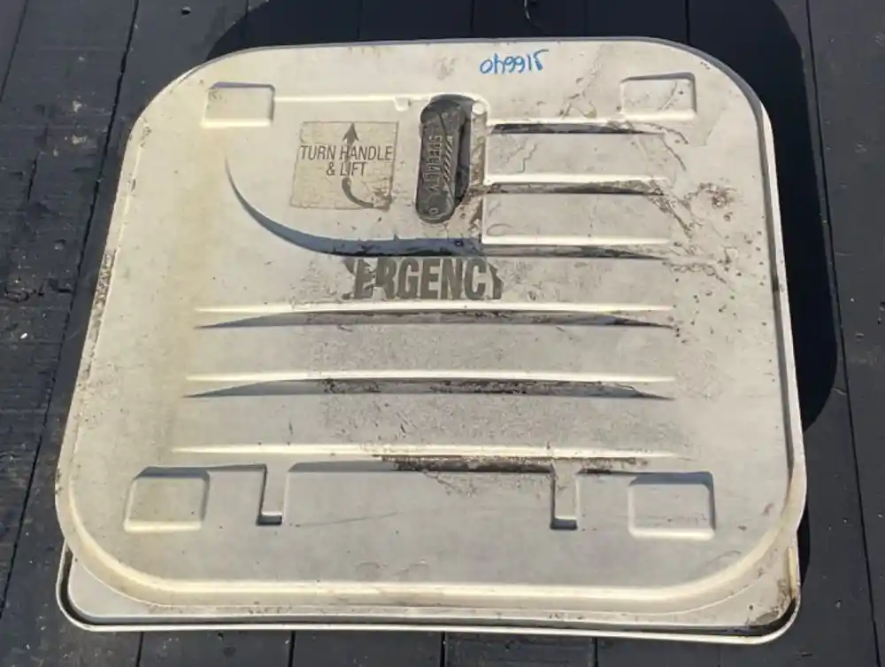 (Used) 2011 Freightliner B2, EMERGENCY EXIT ROOF HATCH- Material: Plastic and Steel, Color: White, Outside Dimensions: 27 3/4" x 27 3/4", Inside Dimensions: 27" x 27",
