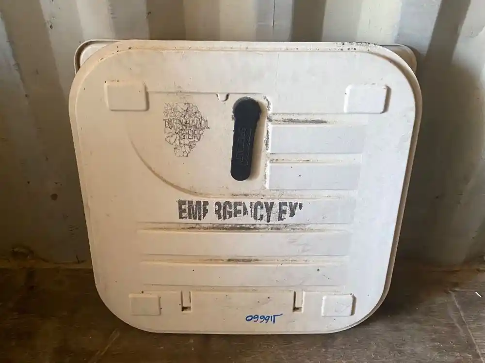 (Used) 2011 Freightliner B2, EMERGENCY EXIT ROOF HATCH- Material: Plastic and Steel, Color: White, Outside Dimensions: 27 3/4" x 27 3/4", Inside Dimensions: 27" x 27",