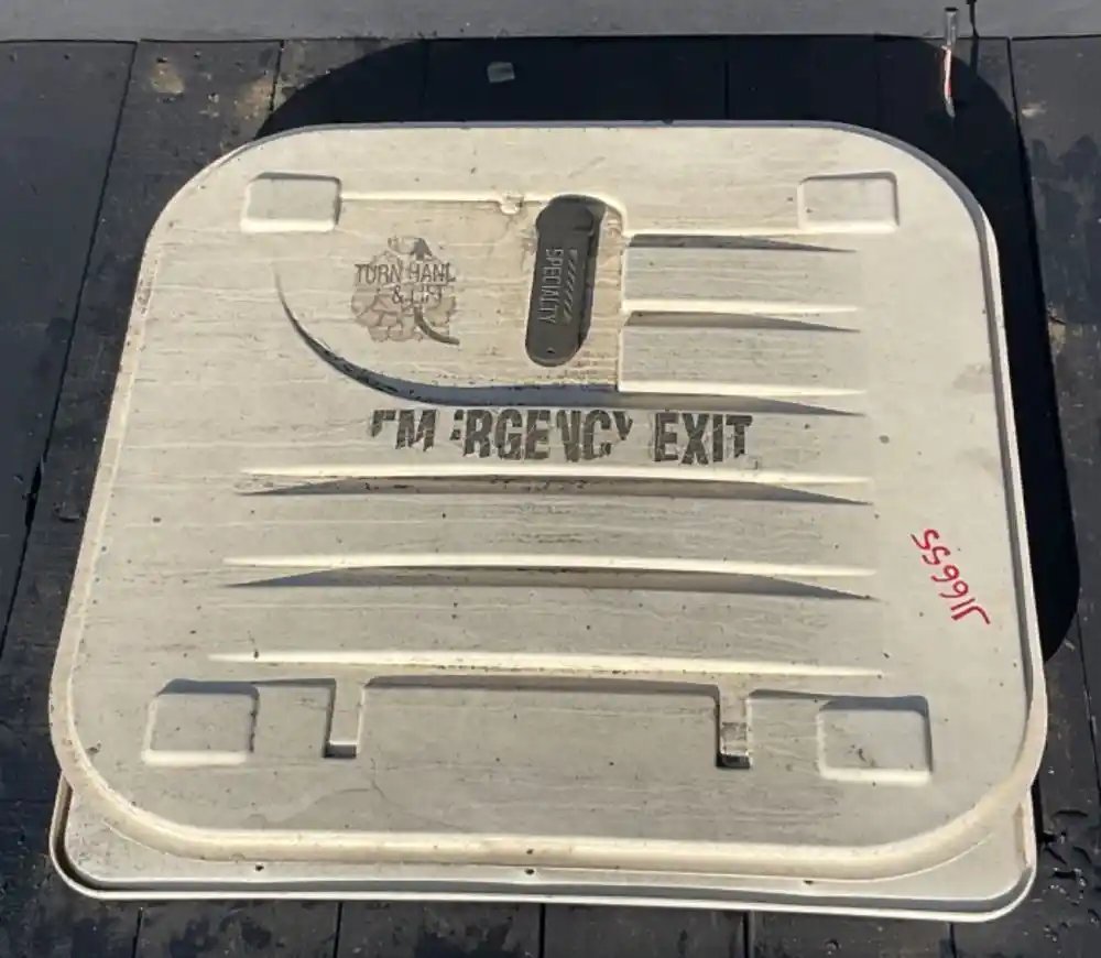 (Used) 2011 Freightliner B2, EMERGENCY EXIT ROOF HATCH- Material: Plastic and Steel, Color: White, Outside Dimensions: 27 3/4" x 27 3/4", Inside Dimensions: 27" x 27",