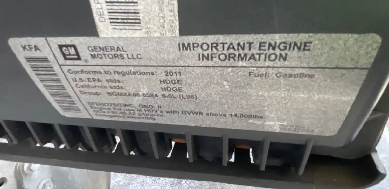 (Used) 2011 GM/Chev (HD) 6.0L, ENGINE ASSEMBLY- Family Number: BGMXE06.0584, Displacement: 6.0L, Horsepower: 360, Serial Number: TBD, ECS: SFI, HO2S, TWC, Fuel: Gasoline, Reference images for condition