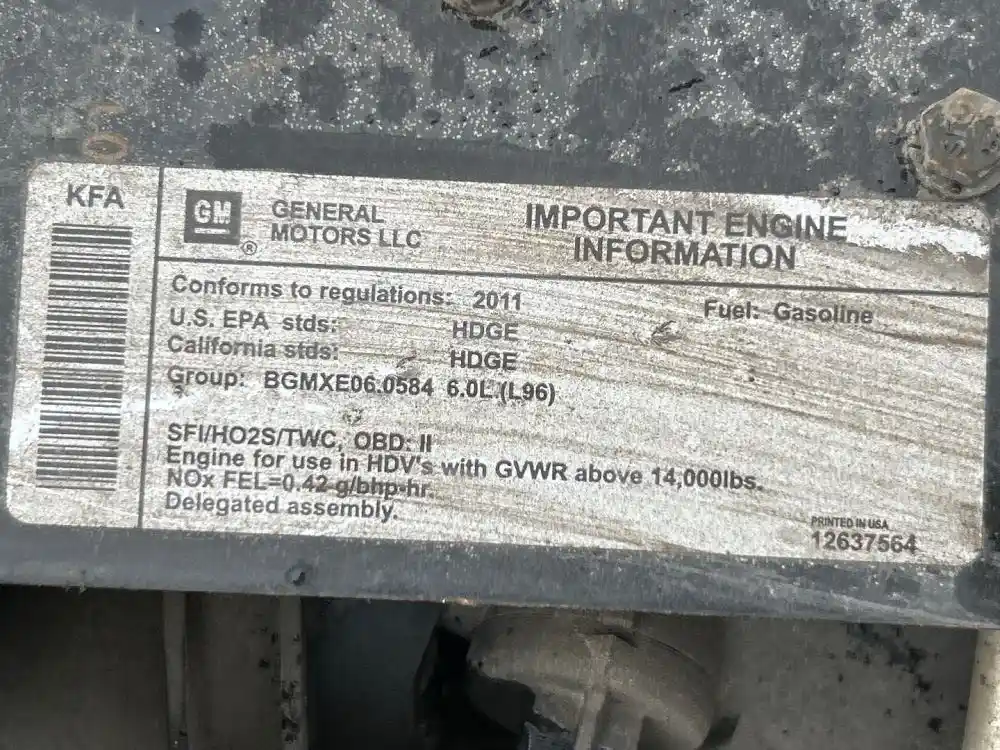 (Used) 2011 GM/Chev (HD) 6.0L, ENGINE ASSEMBLY- Family Number: BGMXE06.0584, Displacement: 6.0L, Horsepower: 360, Part Number: 12637564 E.C.S: SFI, HO2S, TWC, Reference images for condition