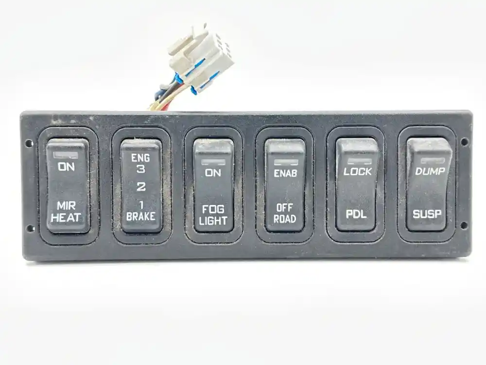 (Used) 2011 International PROSTAR, MISCELLANEOUS DASH SWITCHES- Part Number: 32237, Controls: Mirror Heat, EGN 3 2 1 Brake, Fog Light, ENAB Road, Lock PDL, Dump Susp, Reference images for condition. ,