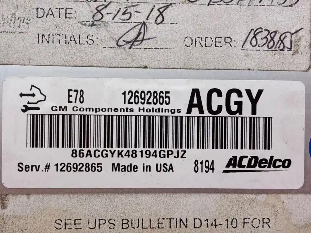 (Used) 2011 Workhorse Custom Chassis W62 GM 6.0L, ENGINE ECM- Part Number: 12692865, Serial Number: 86ACGYK48194GPJZ, Serv. Number: 12692865, E78, 8194, J1 Rectangular Plug with 65 Pins, J2 Rectangular Plug with 73 Pins, J3 Rectangular Plug with 55 Pins, Reference images for condition. ,
