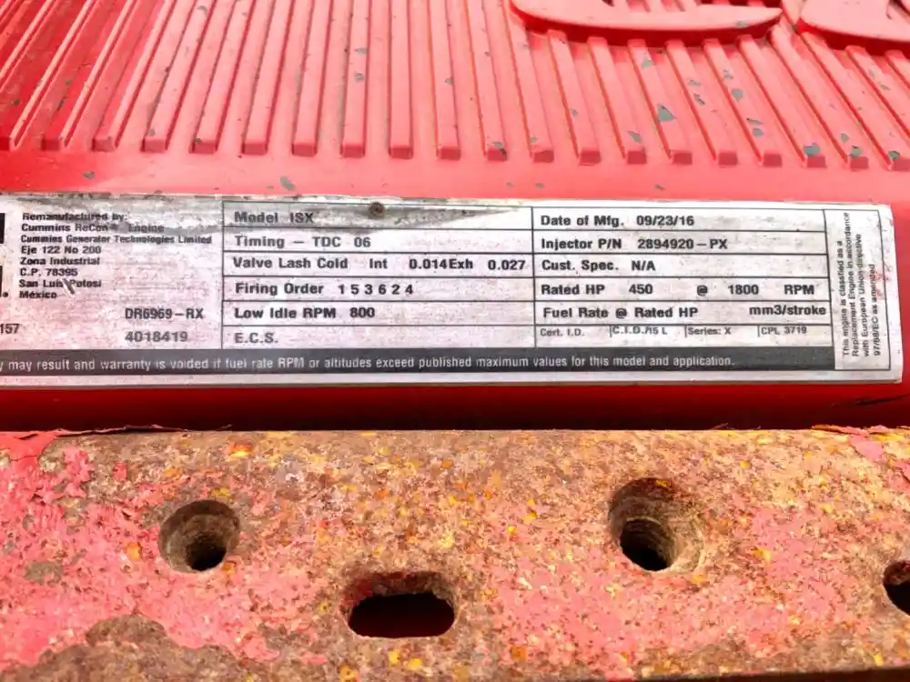 (Used) 2012 Cummins ISX, ENGINE ASSEMBLY- Remanufactured, Family Number: CCEXH0912XAP, Displacement: 15L, Horsepower: 450, CPL: 3719, ESN: 60818157, Part Number: 4018419, Reference images for condition,