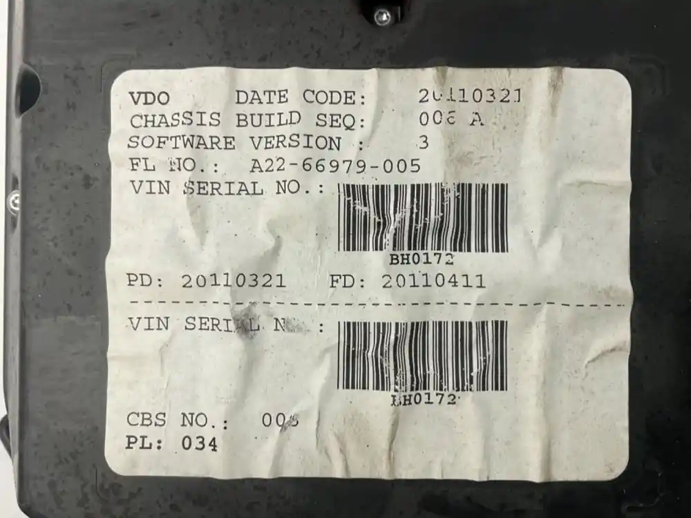 (Used) 2012 Freightliner B2 INSTRUMENT CLUSTER - Part Number: A22-66979-005, Serial Number: BH0172, Gauges: Oil Pressure, Water Temperature, Transmission Temperature, RPM, Speedometer, Fuel Level, DEF Level, (P) Air Pressure,
