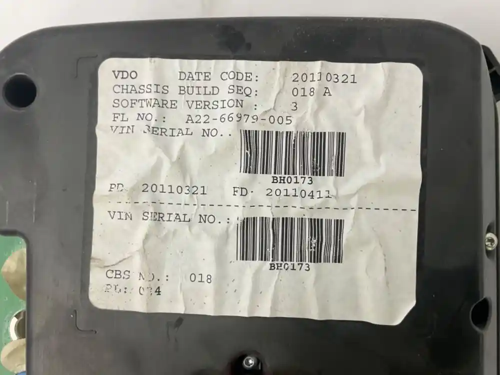(Used) 2012 Freightliner B2 INSTRUMENT CLUSTER - Part Number: A22-66979-005, Serial Number: BH0173, Gauges: Oil Pressure, Water Temperature, Transmission Temperature, RPM, Speedometer, Fuel Level, DEF Level, (P) Air Pressure,