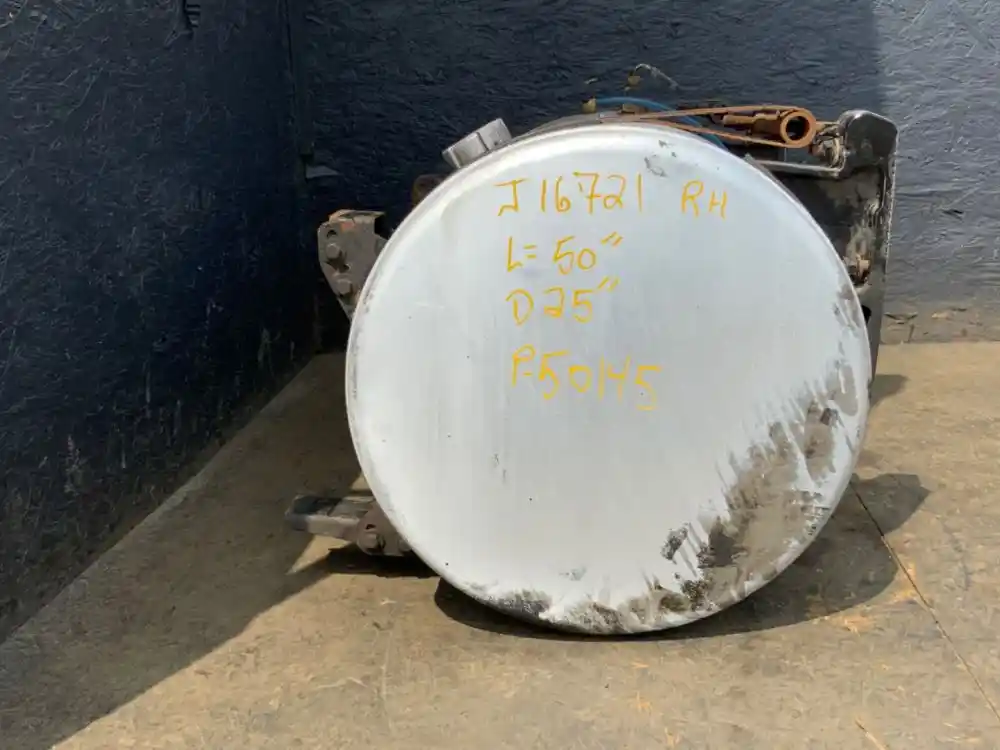 (Used) 2012 Freightliner Cascadia 125, FUEL TANK- Part Number: 37872–161 Side: Passenger Right Side, Capacity: 100 Gallons, Material: Aluminum, Shape: Cylinder, Dimensions: L=50", D=25", Reference images for condition.