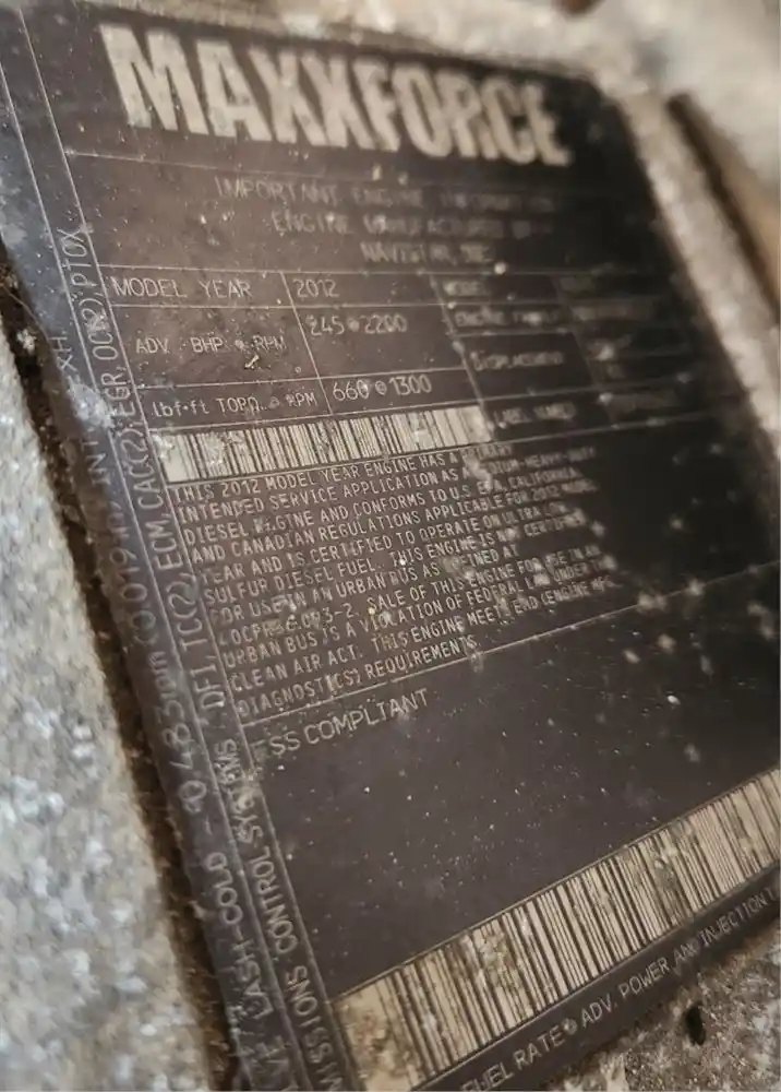 (Used) 2012 International A245, ENGINE ASSEMBLY- Family Number: MAXXFORCE DT, Displacement: 7.6L, Horsepower: 245, Serial Number: 466HM2Y3420914, Part Number: 7091654C1, E.C.S: DFI, TC(2), ECM, CAC(2), EGR, OC(2), PTOX,