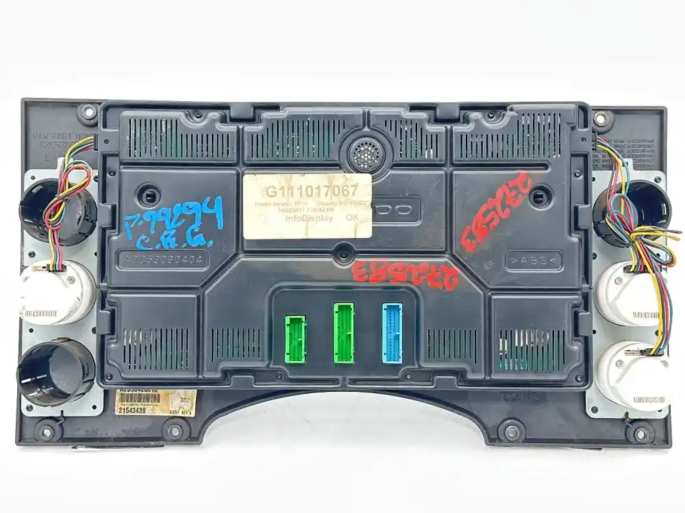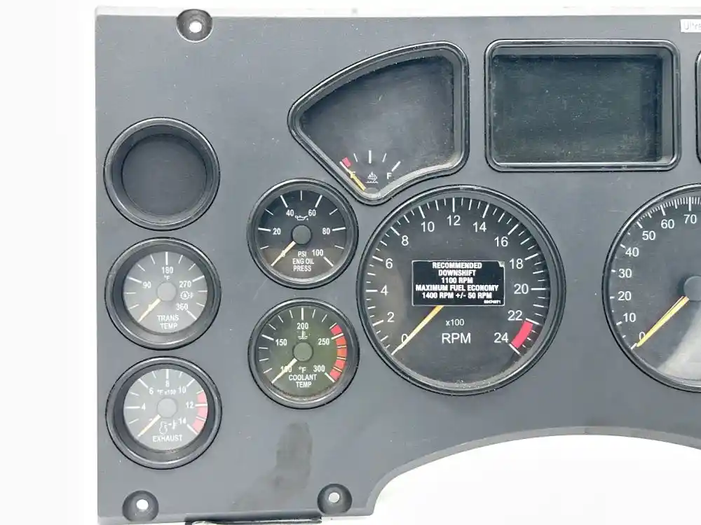 (Used) 2012 Mack CXU613, INSTRUMENT CLUSTER- Part Number: 21543439, Gauges: Trans Temp, Exhaust, Engine Oil Pressure, Coolant Temp, Def Level, RPM, MPH, Fuel Level, Brake Air Pressure (P), Brake Air Pressure (S), Engine Oil Temp, Material: Plastic, Reference images for condition, ,