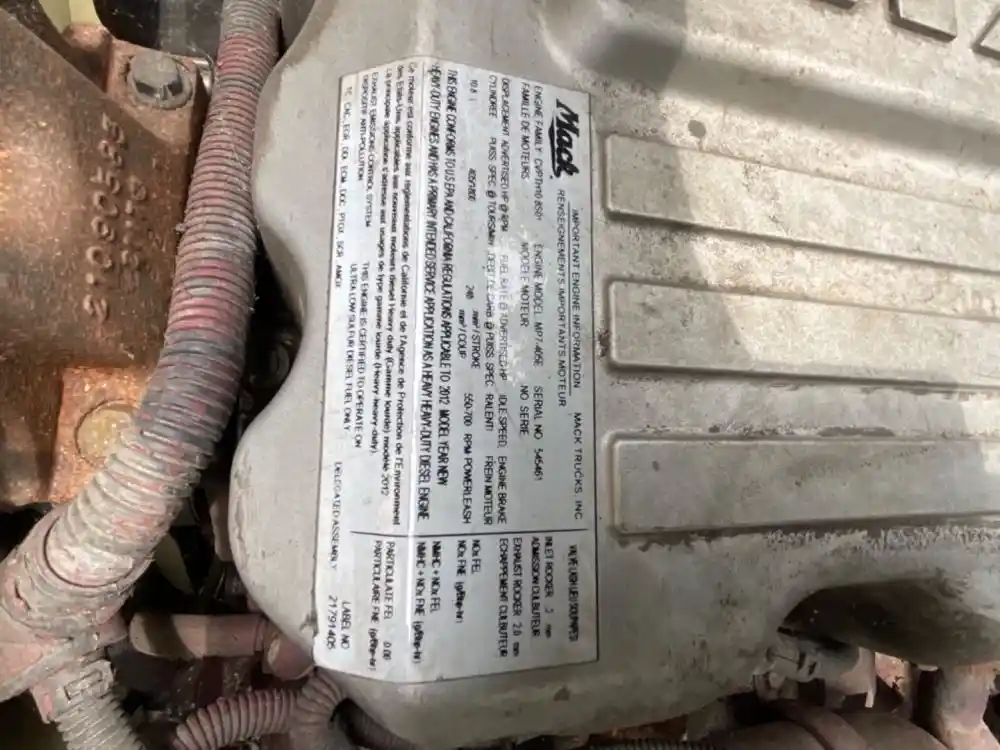 (Used) 2012 Mack MP7, ENGINE ASSEMBLY- Family Number: CVPTH10.8S01, Displacement: 10.8L, Horsepower: 405, Serial Number: 545461, E.C.S.: TC, CAC, EGR, DDI, ECM, DOC, PTOX, SCR, AMOX, ELKTON MD, 21921