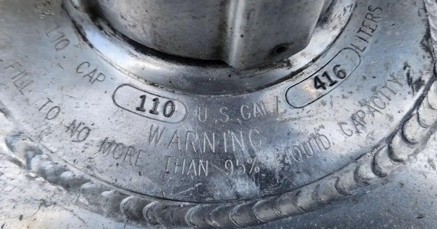 (Used) 2013 Freightliner 114SD, FUEL TANK- Side: Driver Left Side, Capacity: 110 Gallons, Material: Aluminum, Shape: Cylinder, Dimensions: L=55", D=25", It's Dented, Damage Reference images for condition,