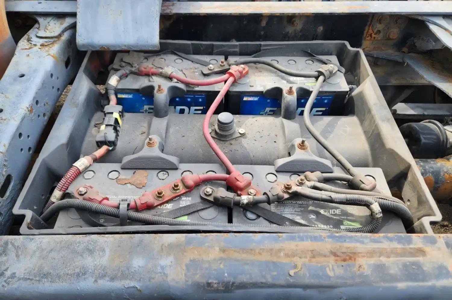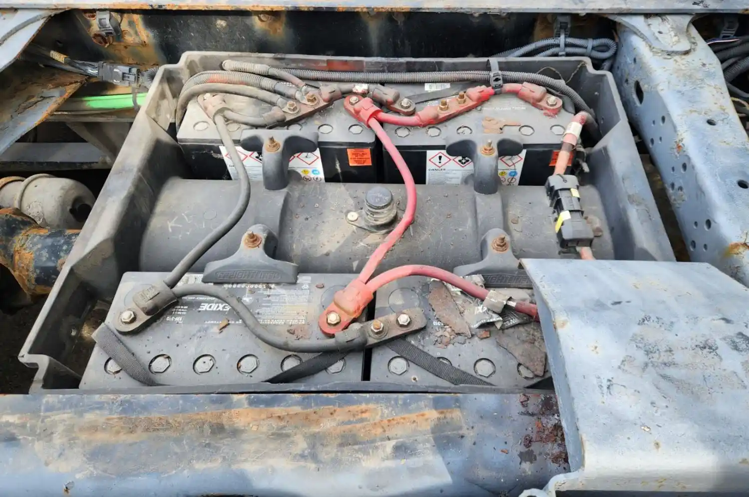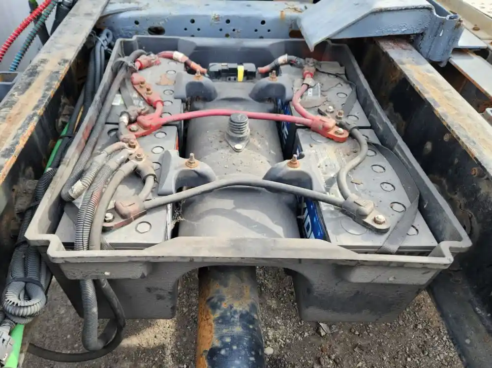 (Used) 2013 Freightliner Cascadia 125, BATTERY BOX (2)- Side: Central Frame behind Cab, Capacity: 4 Batteries, Material: Plastic, Dimensions: L=31", W=25 ½", Reference images for condition,