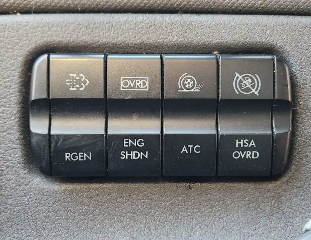 (Used) 2013 Freightliner Cascadia 125, MISCELLANEOUS DASH SWITCHES- Controls: Particulate Filter Regeneration, Ovrd Eng Shdn, Atc, Hsa Ovrd, Material: Plastic, Reference images for condition,