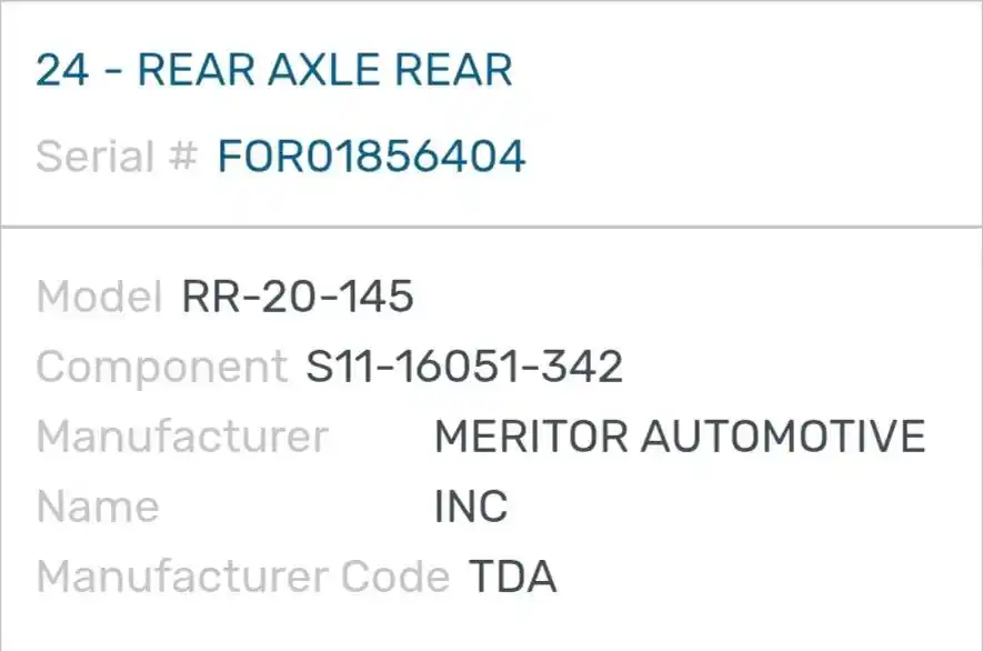(Used) 2013 Freightliner Cascadia 125, REAR DIFFERENTIAL GEARS ONLY- Part Number: S11-16051-342, Serial Number: FOR01856404, Make: Meritor, Model: RT40-145A, Ratio: 3.42, Capacity: 20,000 Lbs,