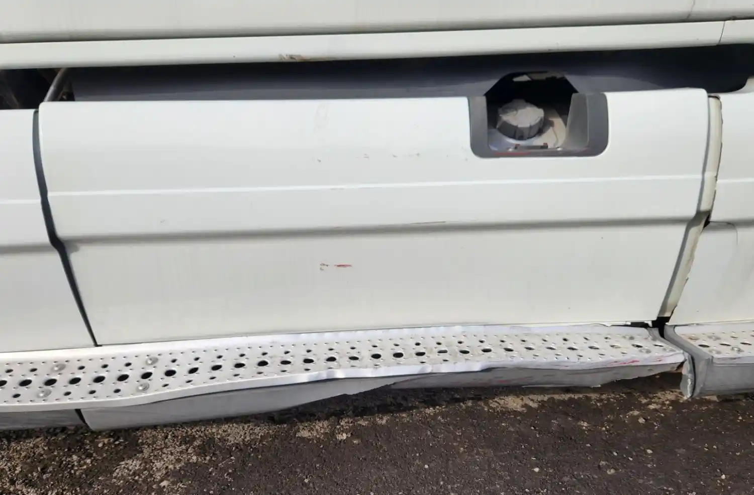 (Used) 2013 Freightliner Cascadia 125, TANK FAIRINGS- Side: Passenger Right Side, Color: White, Material: Composite, Dimensions: L=55", H=22", Damage Reference images for condition,
