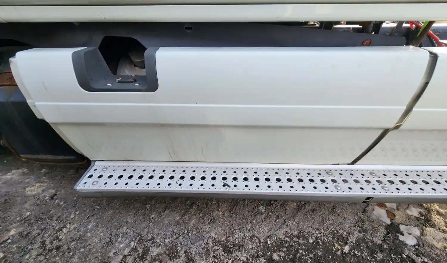 (Used) 2013 Freightliner Cascadia 125, TANK FAIRINGS- Side: Driver Left Side, Color: White, Material: Composite, Dimensions: L=55", H=22", Reference images for condition,