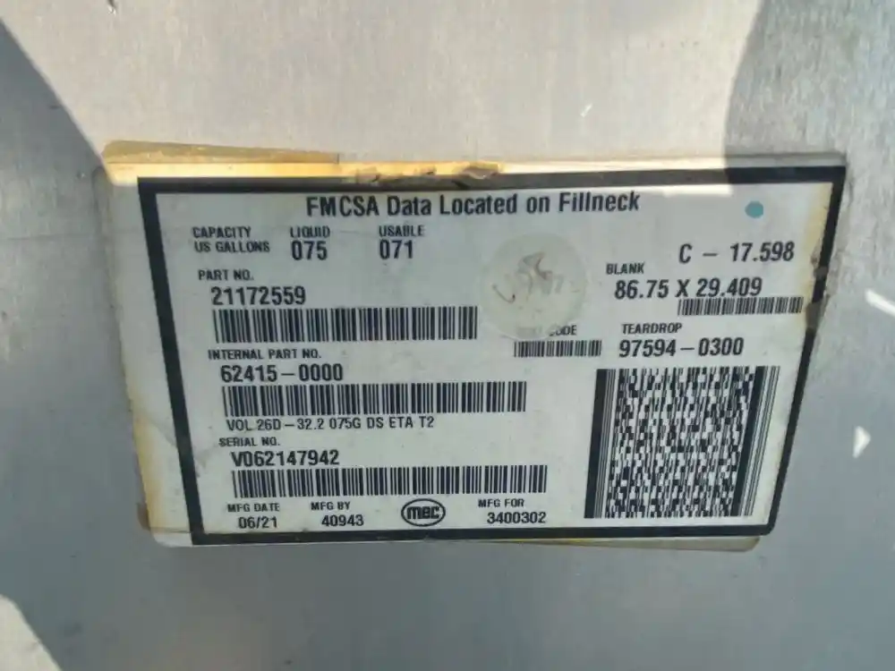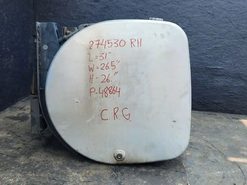 (Used) 2014 Mack CXU613T, FUEL TANK- Part Number: 21172559, Serial Number: V062147942, Side: Passenger Side Capacity: 75 Gal./ 71 Gal. Usable, Material: Aluminum Shape: D Shape, Dimensions: L=31", W=26.5", H=26", Reference images for condition
