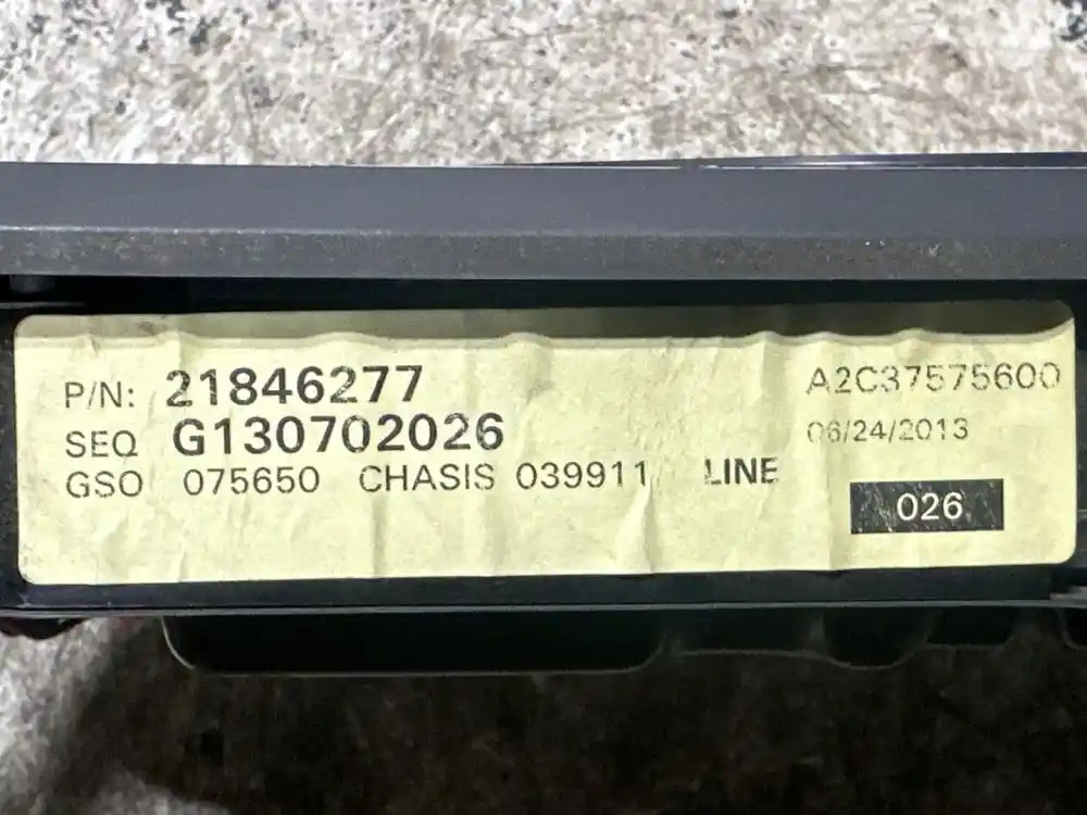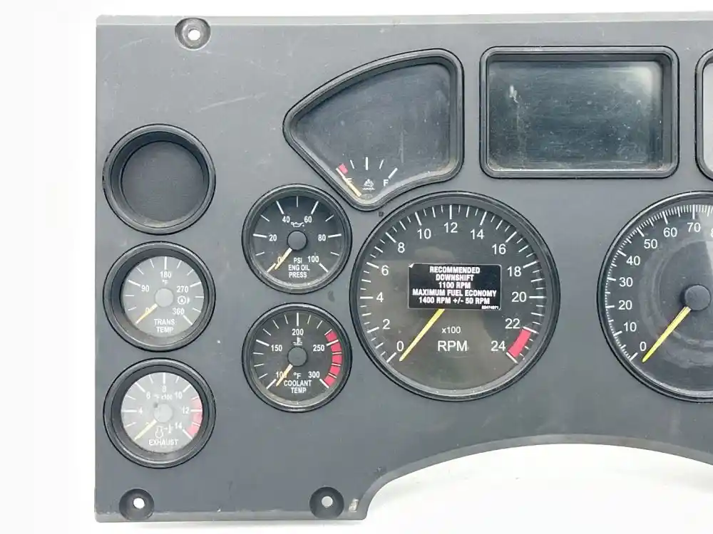 (Used) 2014 Mack CXU613T, INSTRUMENT CLUSTER- Part Number: 21846277, Gauges: Trans Temp, Exhaust, Engine Oil Pressure, Coolant Temp, Def Level, RPM, MPH, Fuel Level, Brake Air Pressure (P), Brake Air Pressure (S), Engine Oil Temp, Material: Plastic, Reference images for condition, ,