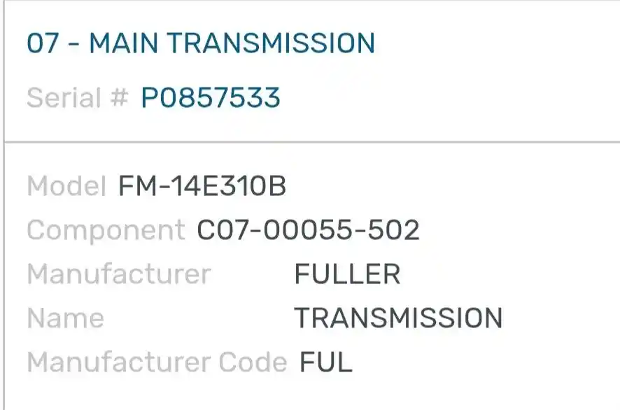 (Used) 2015 Eaton/Fuller (AT), TRANSMISSION ASSEMBLY- Model: FM-14E310B, Serial Number: P0857533, Part Number: C07-00055-502, Engine: Cummins ISX12 400ST, Reference images for condition,