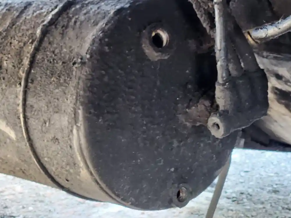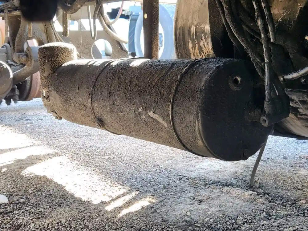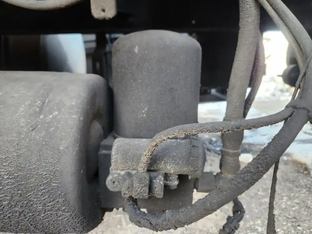 (Used) 2015 Freightliner Cascadia 125, AIR TANK WITH DRYER- (Dryer Reservoir Module With a Bendix AD-IS) Side: Driver Left Side, Location: Under On Frame, Material: Steel With Aluminum, Dimensions: L=33", D=9", Front Ports: 4, Side Ports: 0, Rear Ports: 1, Reference images for condition,
