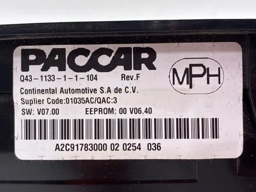 (Used) 2015 Kenworth T680, Cab & Cab Parts INSTRUMENT CLUSTER- Part Number: Q43-1133-1-1-104, Serial Number: A2C91783000 02 0254 036, Suplier Code: 01035AC/QAC: 3, SW: V07. 00, EEPROM: 00 V06. 40,