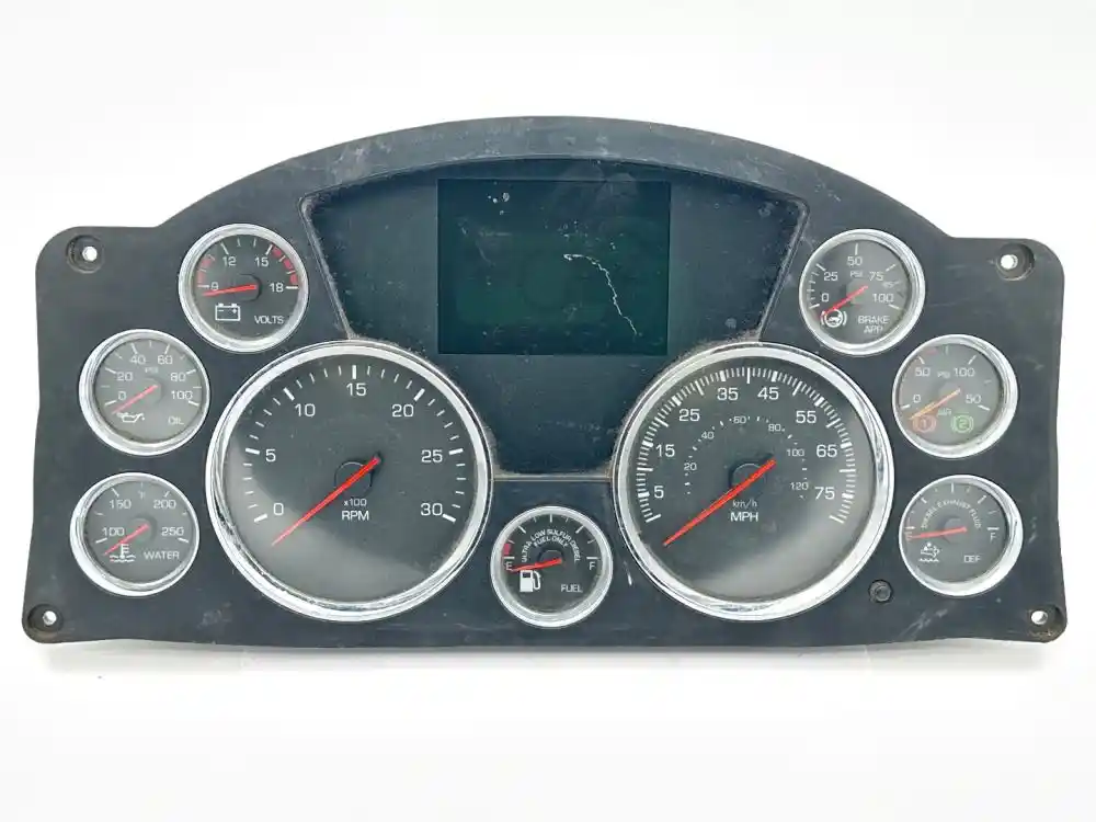 (Used) 2015 Kenworth T680, INSTRUMENT CLUSTER- Part Number: A2C92485900 02, Gauges: Battery Volts, Engine Oil Pressure, Water Temperature, RPM, MPH, Fuel Level, Brake Air Pressure (APP), Brake Air Pressure (1), Brake Air Pressure (2), Def Level, Material: Plastic, Reference images for condition. .