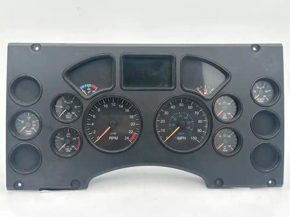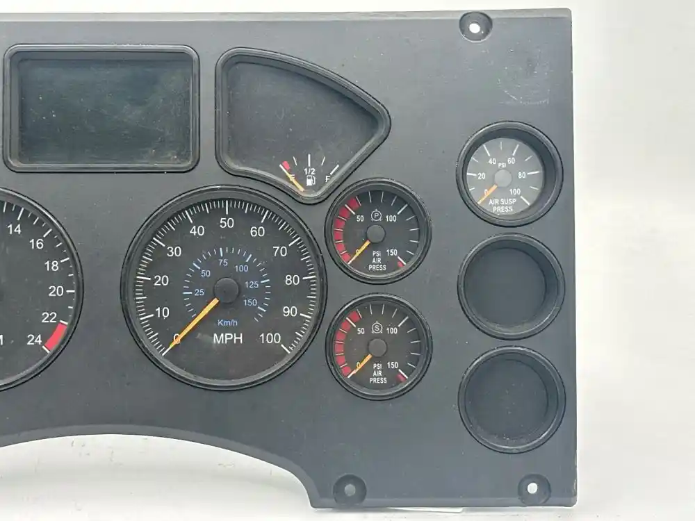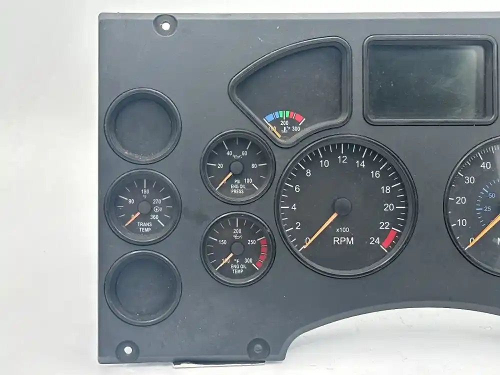 (Used) 2015 Mack CXU633T, INSTRUMENT CLUSTER- Part Number: A2C53090358, Gauges: Transmission Fluid Temperature, Engine Oil Temp, Engine Oil Pressure, Coolant Temp, RPM, MPH, Fuel Level, Brake Air Pressure (P), Brake Air Pressure (S), Air Susp Press, Material: Plastic, Reference images for condition, ,