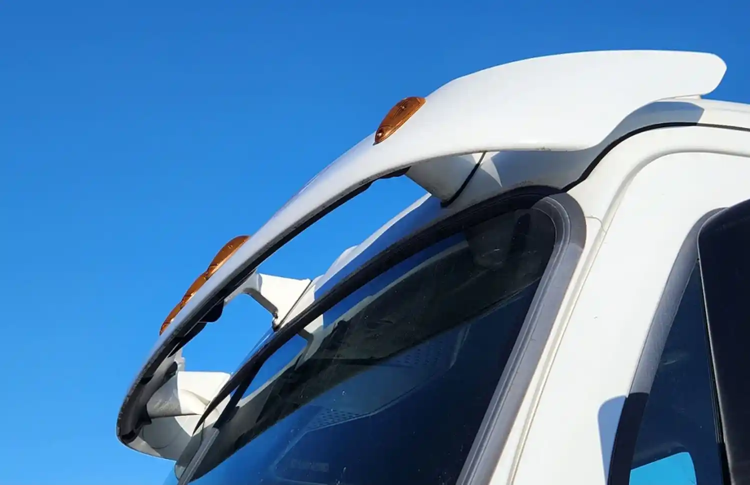 (Used) 2016 Freightliner Cascadia 113, EXTERIOR SUN VISOR- Side: Center Of Truck, Color: White, Material: Fiberglass, Reference images for condition,