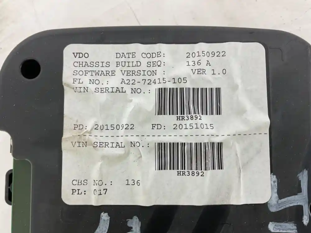 (Used) 2016 Freightliner M2 106 INSTRUMENT CLUSTER - Part Number: A22-72415-105, Serial Number: HR3892, Gauges: Oil Temp, Water Temp, RPM, MPH, Fuel Level, DEF Level, Air Pressure (P), Air Pressure (S), Reference images for condition,