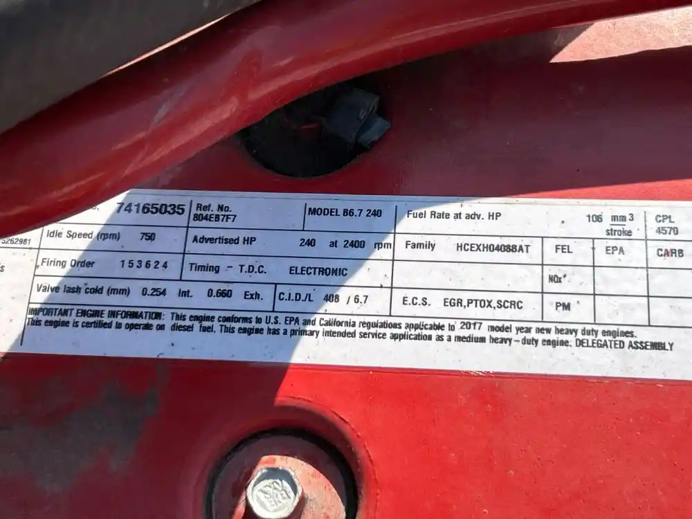 (Used) 2017 Cummins ISB 6.7, ENGINE ASSEMBLY- Family Number: HCEXH0408BAT, Displacement: 6.7L, Horsepower: 240, Ar.No./CPL: 4570, Serial Number: 74165035, Part Number: 804EB7F7, E.C.S.: EGR, PTOX, SCRC, Reference images for condition