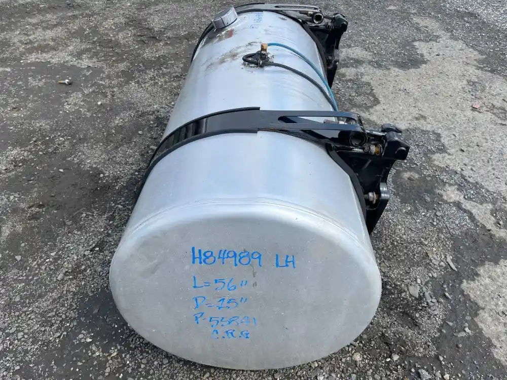 (Used) 2017 Freightliner Cascadia 125, FUEL TANK- Side: Driver Left Side, Capacity: 120 Gallons, Material: Aluminum, Shape: Cylinder, Dimensions: L=56, D=25” (Damage Reference images for condition)