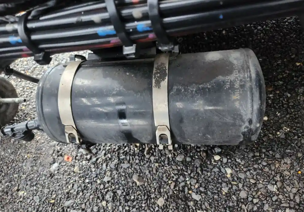 (Used) 2017 Volvo VNL, AIR TANK- Side: Driver Left Side, Location: On Fuel Tank, Material: Aluminum, Dimensions: L=14.5", D=7.5", Front Ports: 1, Side Ports: 1, Rear Ports: 3, Reference images for condition,