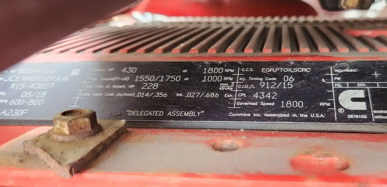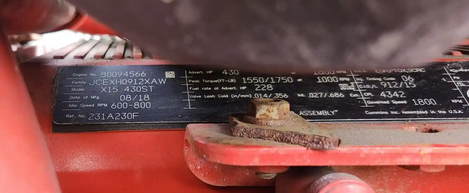 (Used) 2018 Cummins X15, ENGINE ASSEMBLY- Family Number: JCEXH0912XAW, Displacement: 14.9L, Horsepower: 430, CPL: 4342, Serial Number: 80094566, Part Number: 231A230F, E.C.S : EGR, PTOX, SCRC, ,