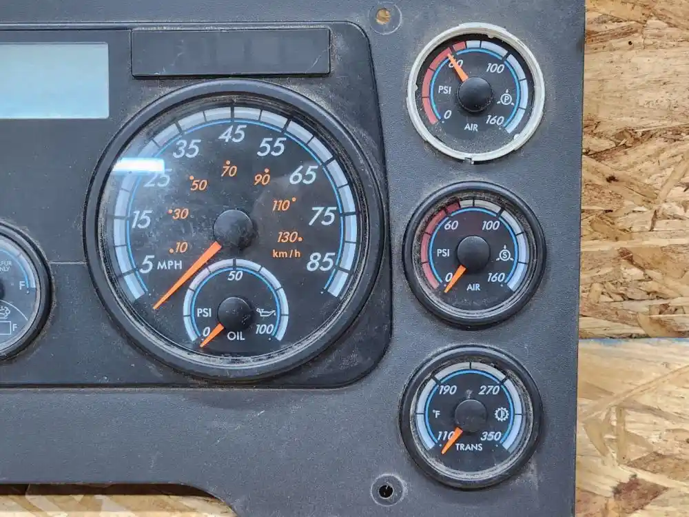 (Used) 2018 Freightliner Cascadia 125, INSTRUMENT CLUSTER- Part Number: A22-72307-000 Gauges: Front Rear Axle Temperature, Rear Rear Axle Temperature, Engine Oil Temperature, RPM, Water Temperature, Fuel Level, Def Level, MPH, Engine Oil Pressure, Brake Air Pressure (P), Brake Air Pressure (S), Transmission Fluid Temperature, Reference images for condition