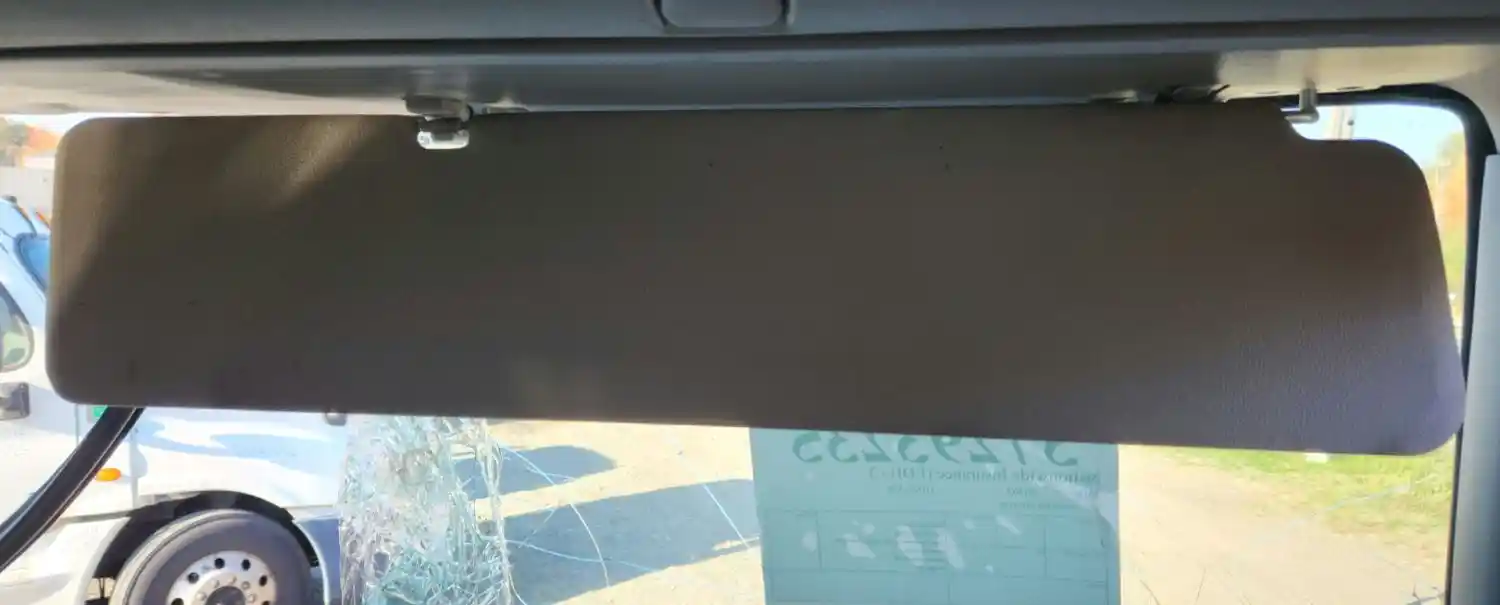 (Used) 2018 Hino 338, SUN VISOR- Side: Passenger Right Side, Color: Grey, Material: Vinyl, Type: Adjustable, Reference images for condition. ,