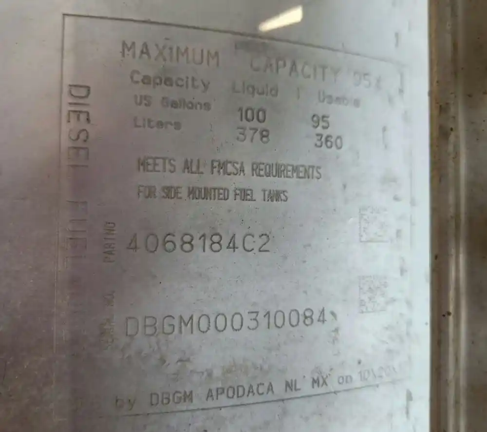 (Used) 2018 International HX620, FUEL TANK- Part Number: 4068184C2, Serial Number: DBGM000310084, Side: Driver Left Side, Capacity: 100 Gallons, Material: Aluminum, Shape: Cylinder, Dimensions: L=54", D=24",