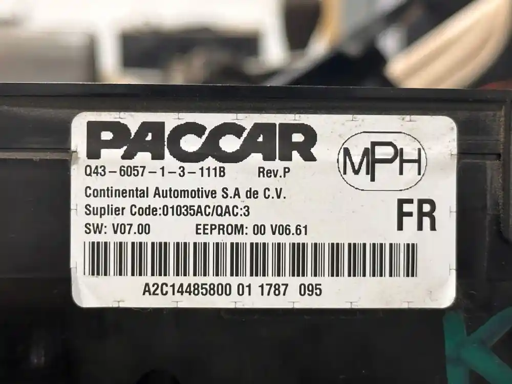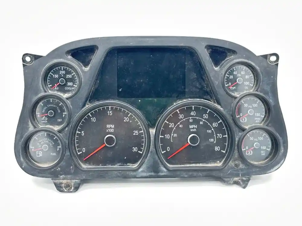 (Used) 2018 Peterbilt 579, INSTRUMENT CLUSTER- Part Number: Q43605713111B, Gauges: Coolant Temperature, Def Level, Fuel Level, RPM, MPH, Engine Oil Pressure, Brake Air Pressure (1), Brake Air Pressure (2), Material: Plastic, Minor Damage!! Reference images for condition. ,