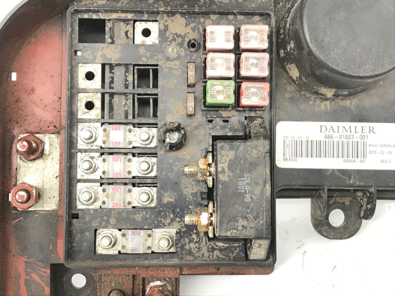 (USED) 2019 FREIGHTLINER CASCADIA 113-POWER DISTRIBUTION MODULE. P/N A66-01883-001 S/N R65936-007 MODEL: DAIMLER POWER DISTRIBUTION AND FUSE MODULE. .