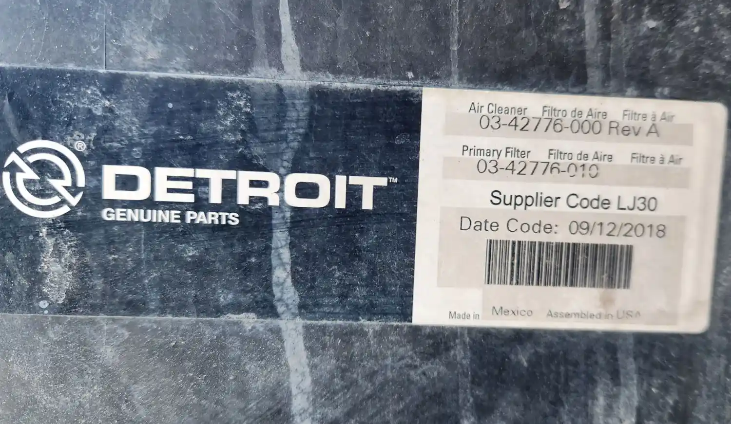 (Used) 2019 Freightliner Cascadia 126, AIR CLEANER- Part Number: 03-42776-000, Side: Center Of Truck, Color: Black, Material: Plastic, Engine: Detroit DD15, Dimensions: L=32", H=6", W=25", Reference images for condition,