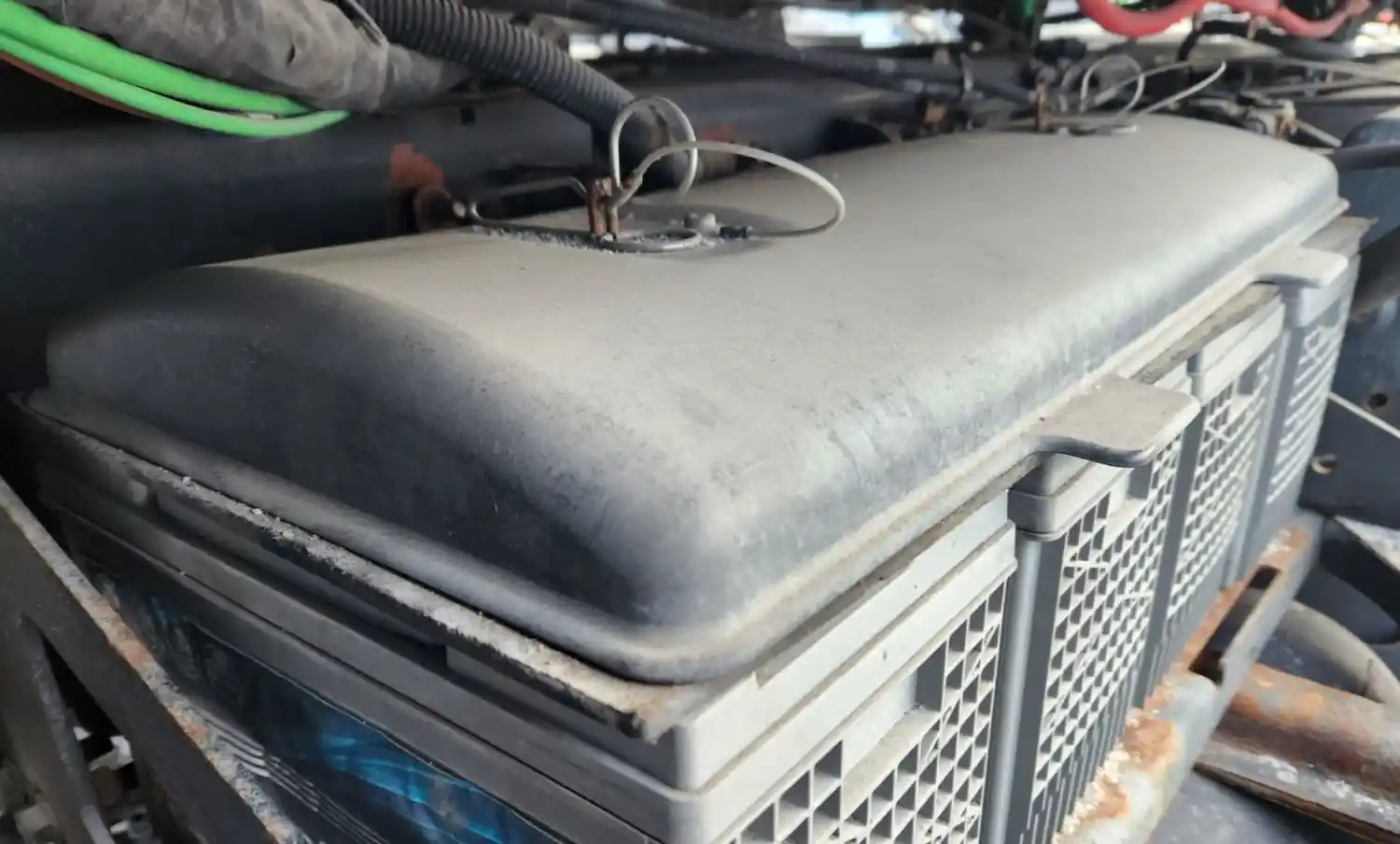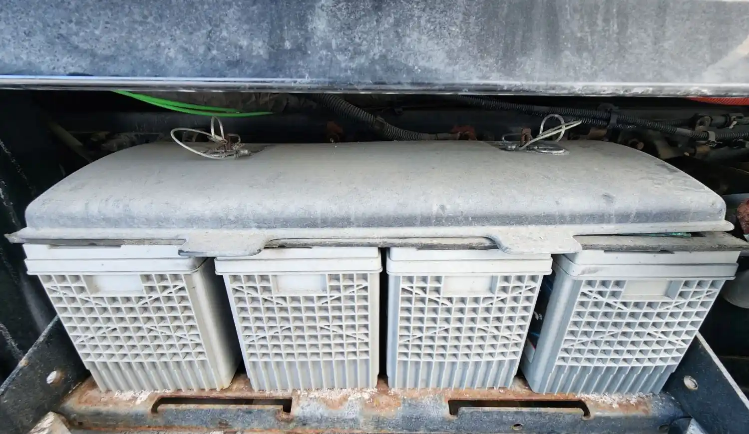 (Used) 2019 Freightliner Cascadia 126, BATTERY BOX COVER (1)- Part Number: 66-01633-000, Side: Driver Left Side, Capacity: 4 Batteries, Material: Plastic, Dimensions: L=28 ?", W=12 ¾", Reference images for condition,