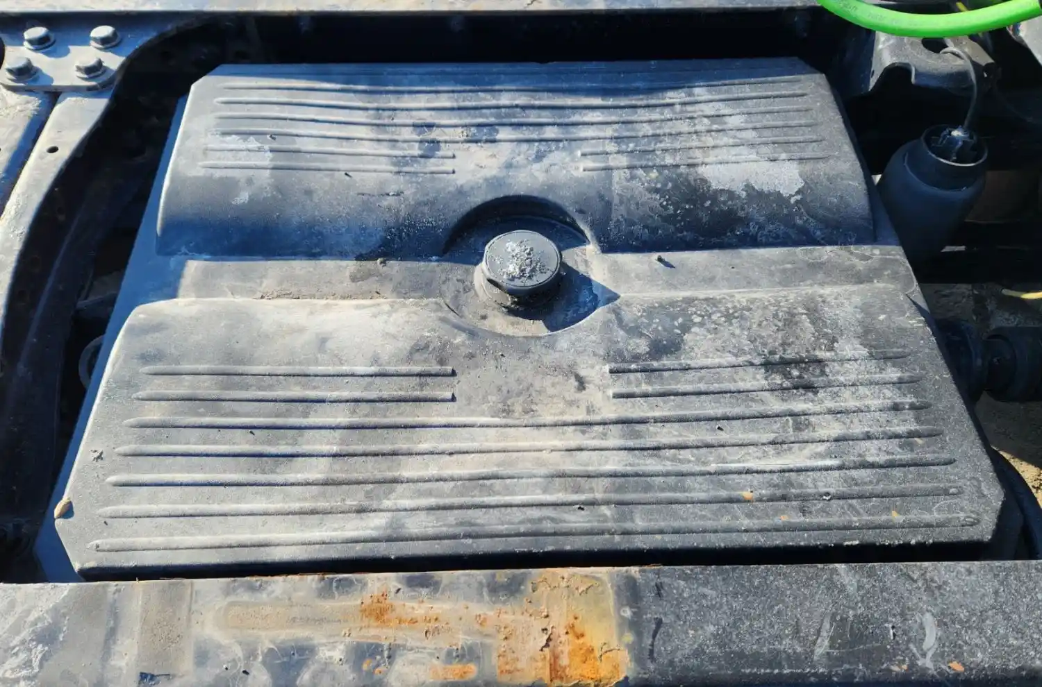 (Used) 2019 Freightliner Cascadia 126, BATTERY BOX COVER (2)- Part Number: 06-27129-000, Side: Central Frame Behind Cab, Capacity: 4 Batteries, Material: Plastic, Dimensions: L=32", W=27", Reference images for condition,