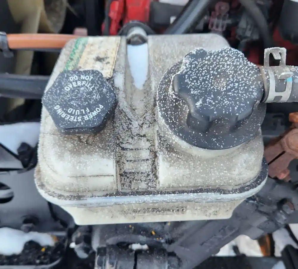 (Used) 2019 Freightliner M2 106, POWER STEERING RESERVOIR- Part Number: A14-17924-000, Location: Frame, Side: Driver Left Side, Engine: Cummins B6.7 220, Material: Plastic, Reference images for condition,